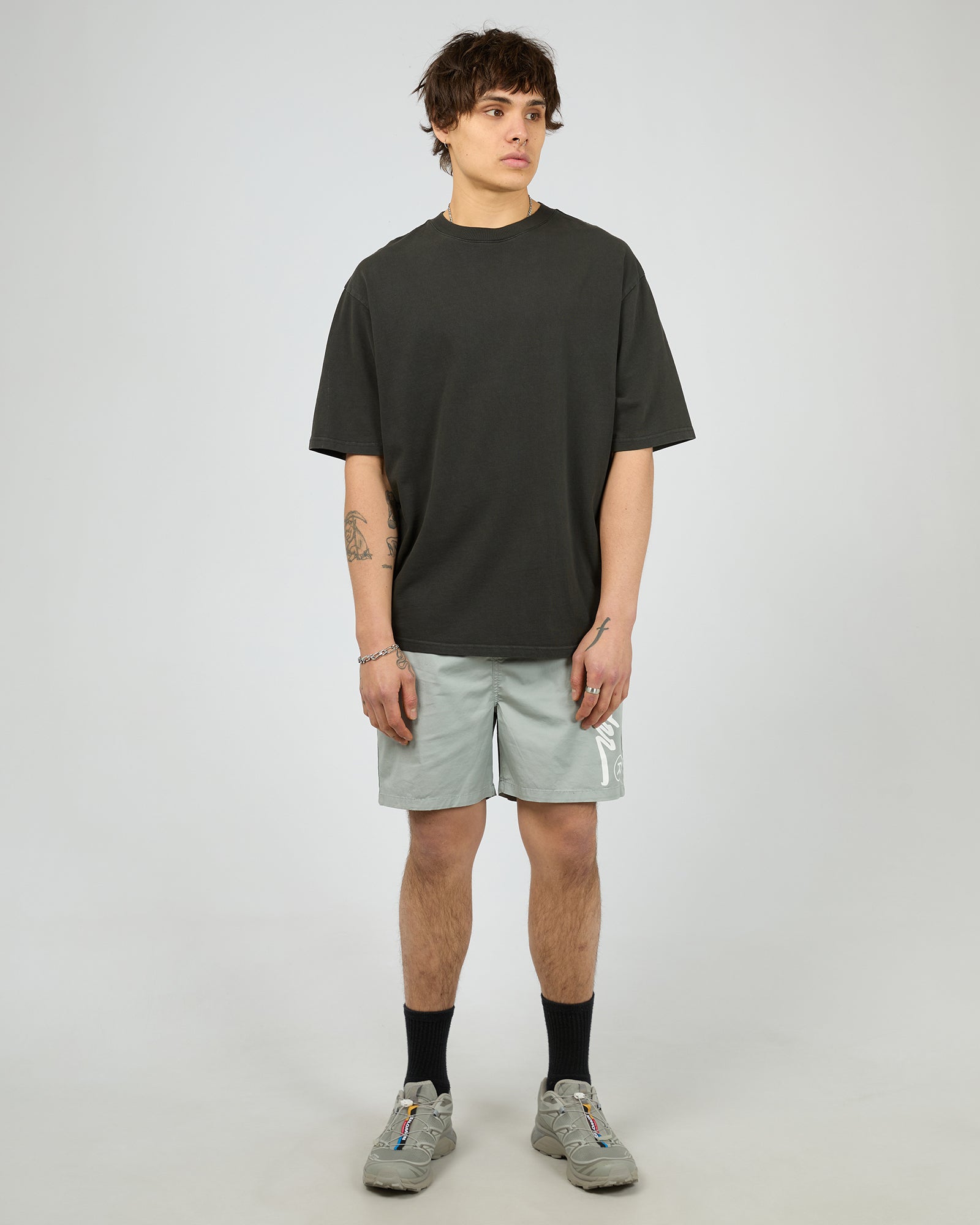Offend beach short in Cement Grey by WNDRR.