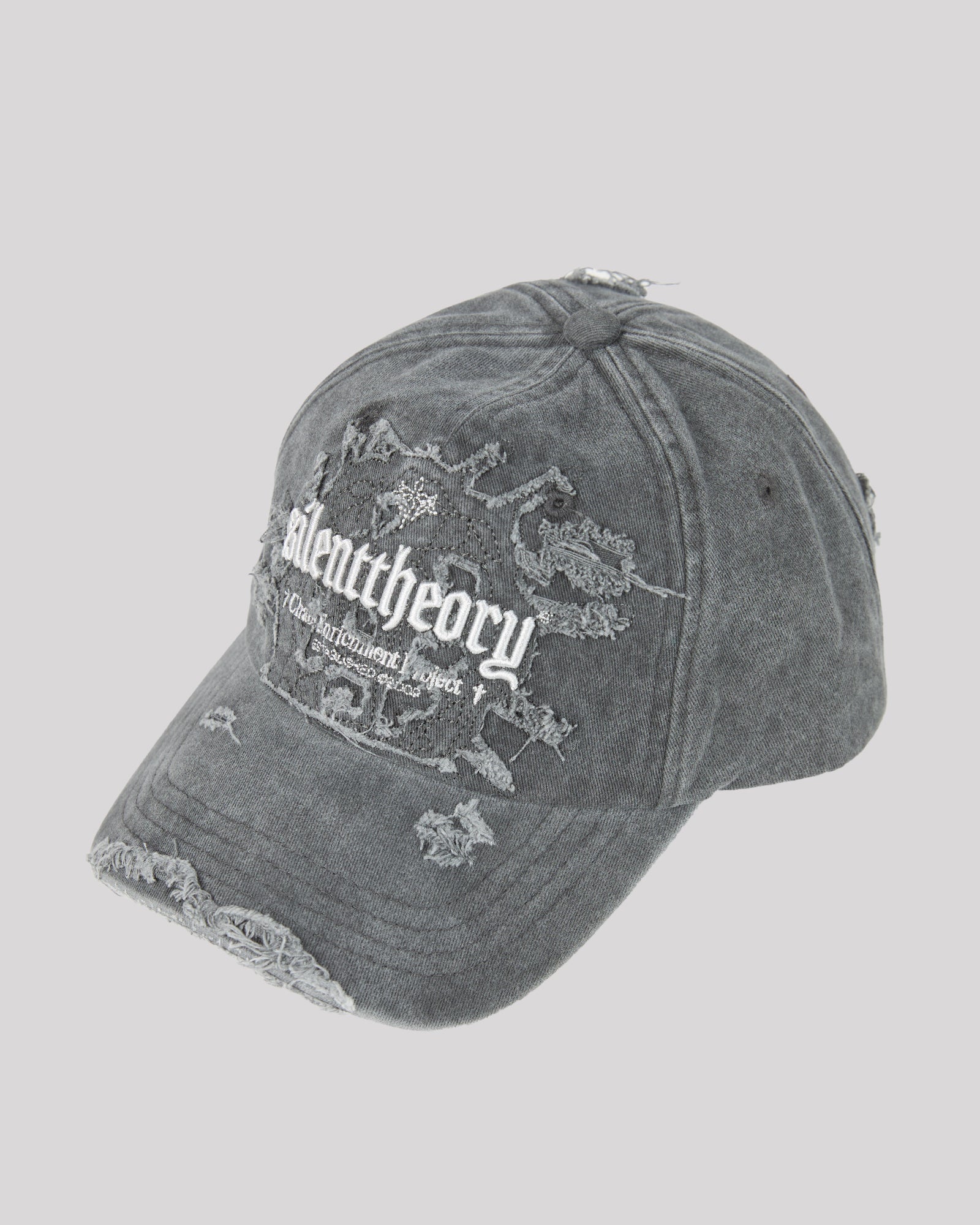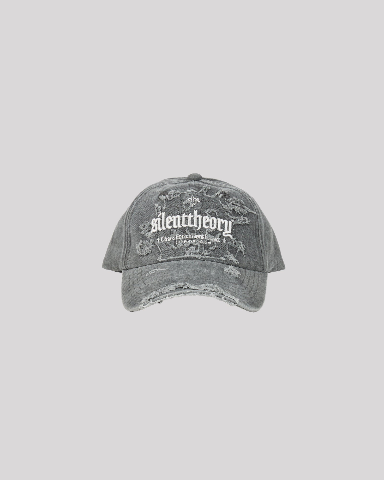 This Distressed Cap in Charcoal features a timeless design with Silent Theory branding on the front and an adjustable back for a comfortable, secure fit. Its one-size-fits-all style makes it easy to wear, while the distressed look adds a touch of casual edge to any outfit.