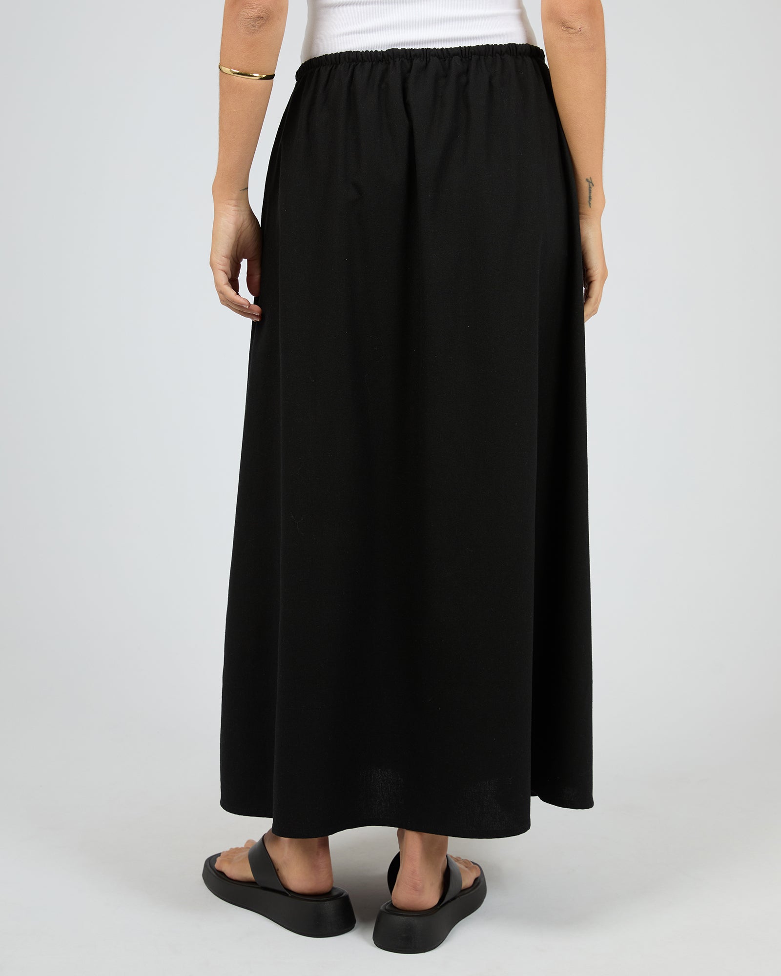Please note: Our timeless maxi skirt is designed to sit mid to low on the hips with a full-length silhouette. For a higher-rise, midi-length fit, we recommend sizing down.