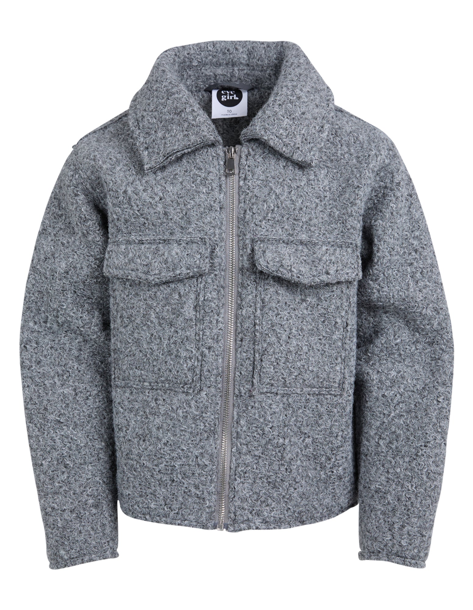 Introducing the Teen Annaise Jacket in Grey. This sophisticated piece boasts a cropped zip opening and front chest pockets, making it both stylish and functional. Fully lined for added comfort and warmth. Elevate any outfit with this luxurious girls jacket.
