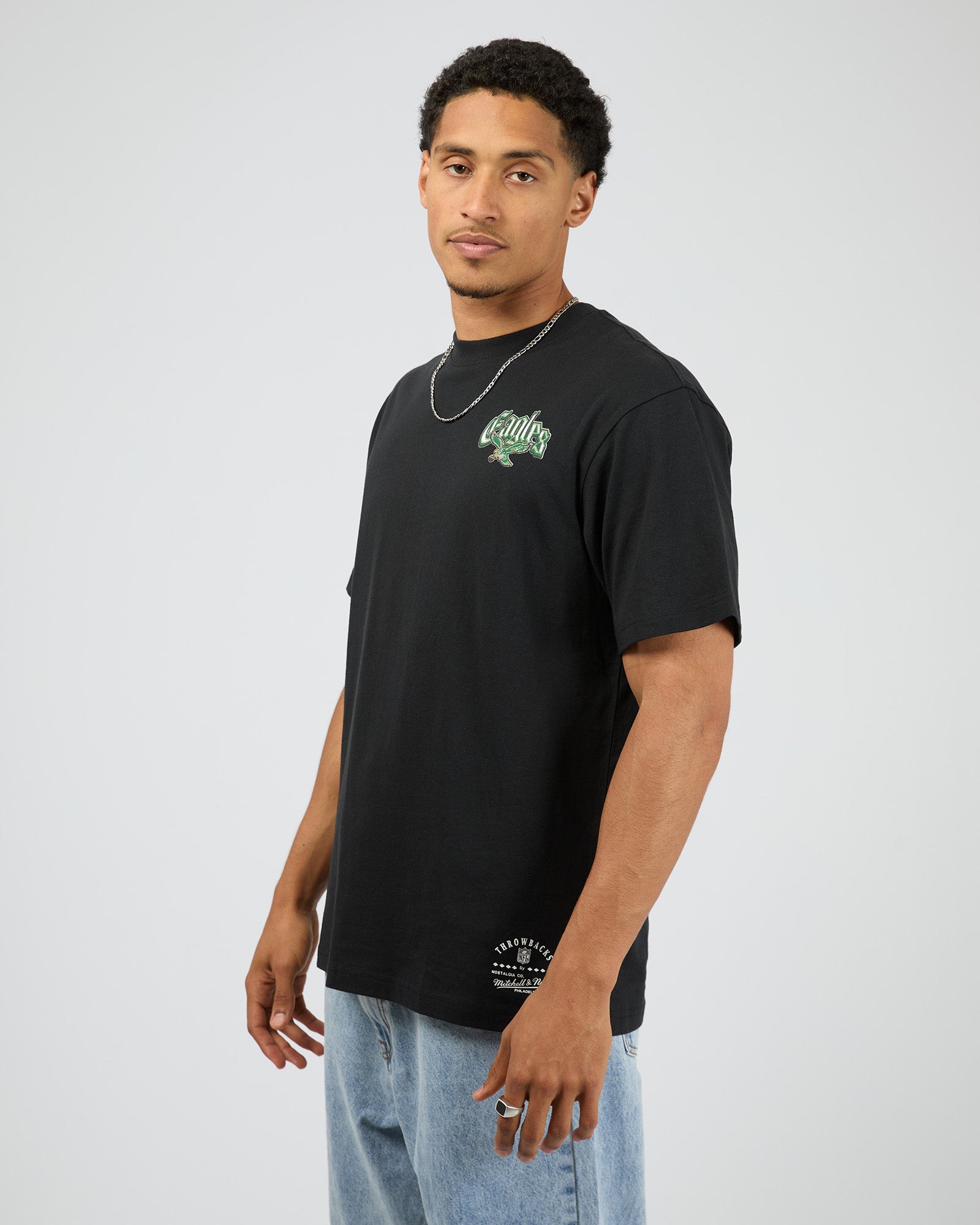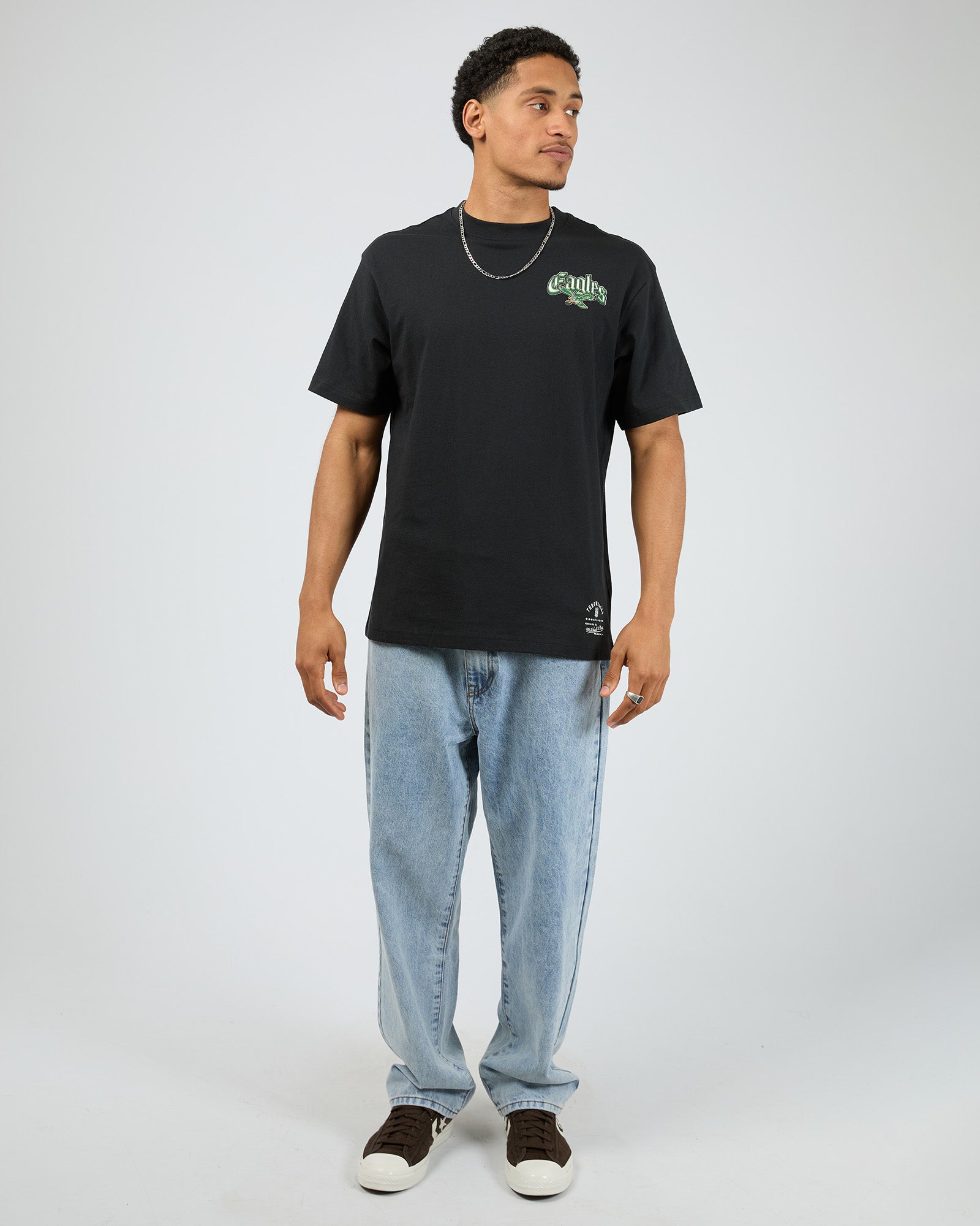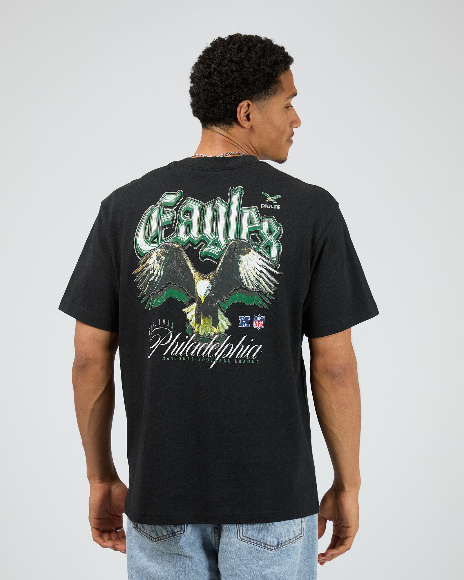 The Gothic Team Tee Egls in Black offers a relaxed fit with short sleeves for all-day comfort. Its standout graphic details on both the front and back showcase iconic Eagles graphics, making it a stylish choice for fans and streetwear enthusiasts alike. Crafted for ease of wear, this tee blends casual style with bold team spirit.