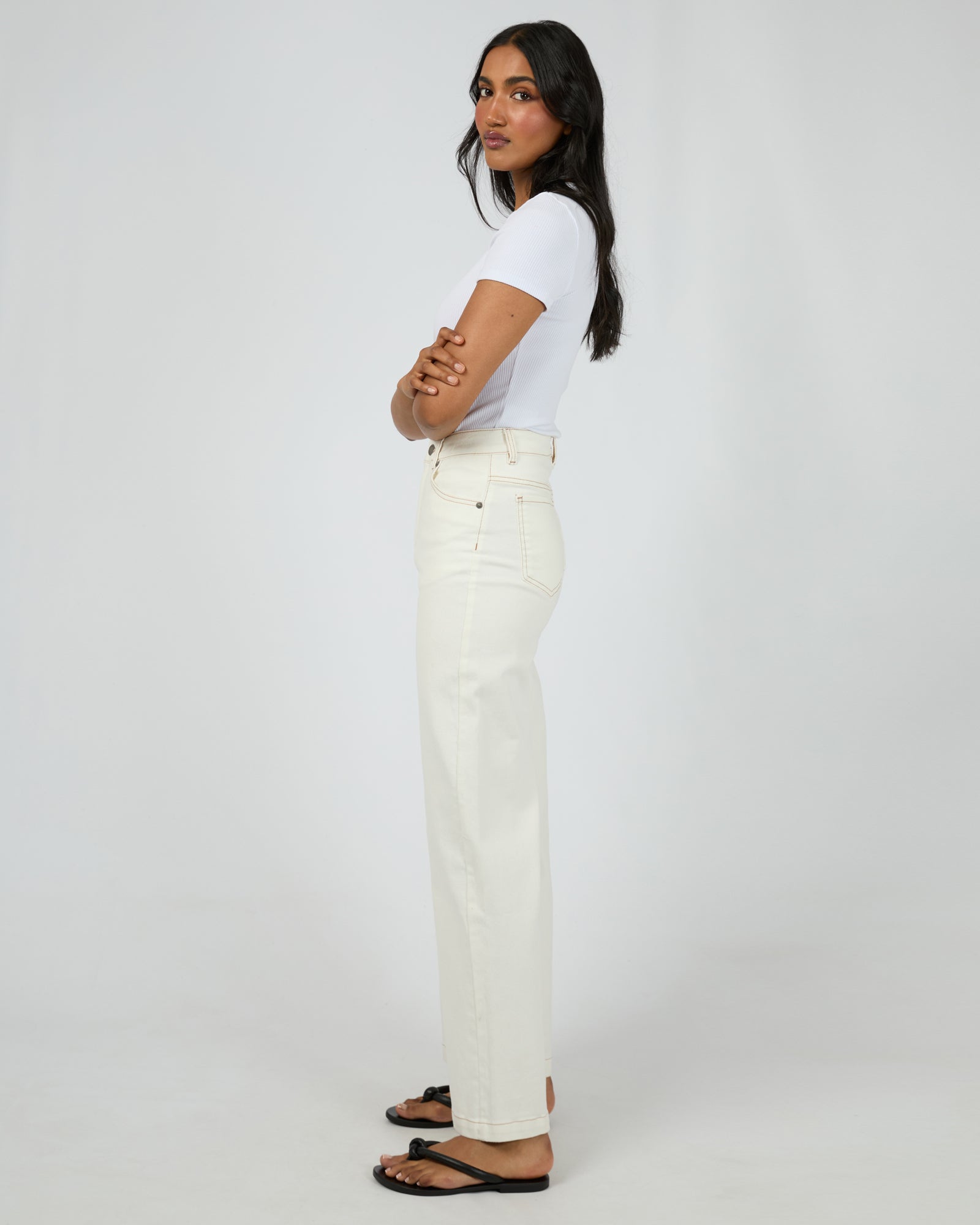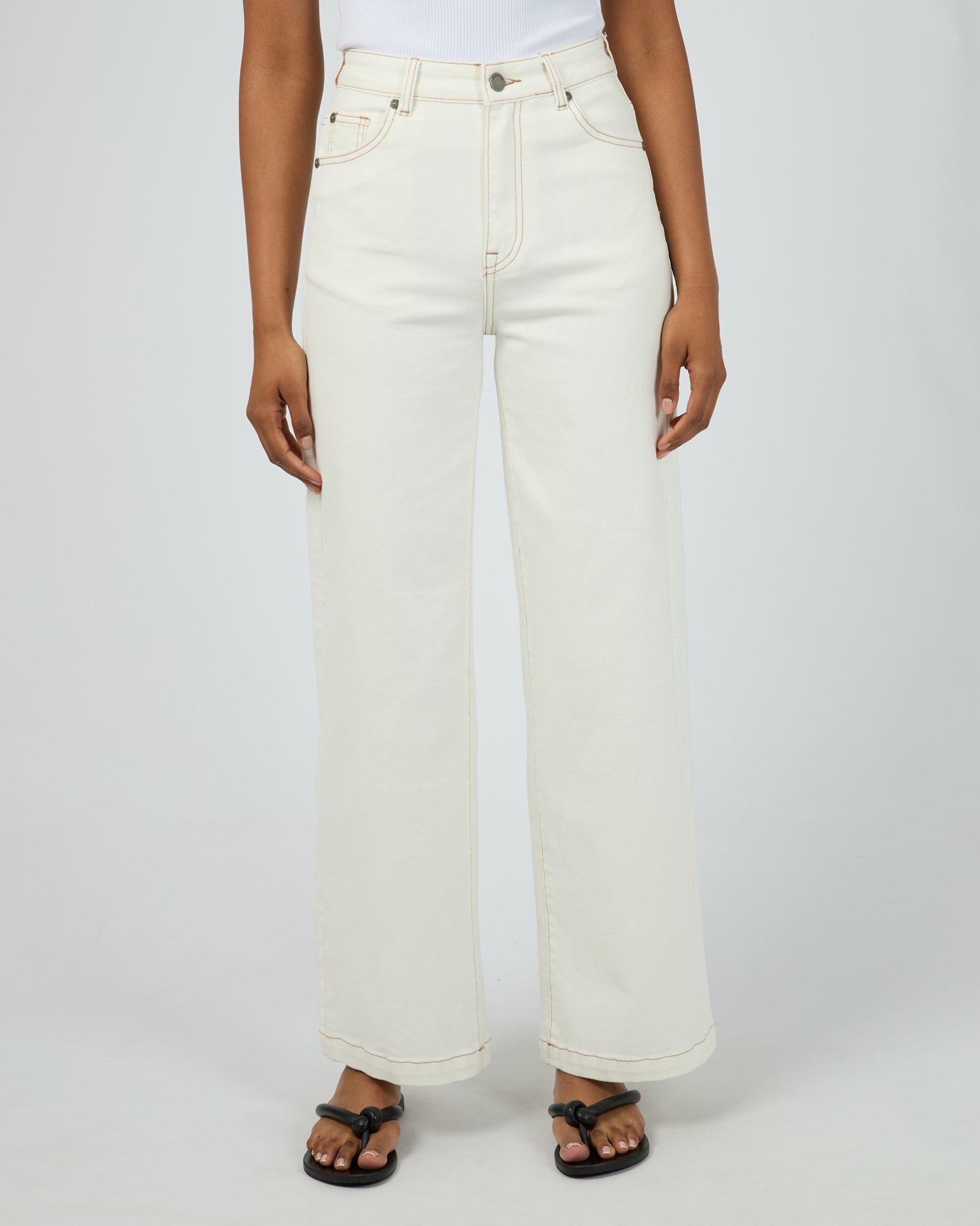 - Wide leg; High rise fit
