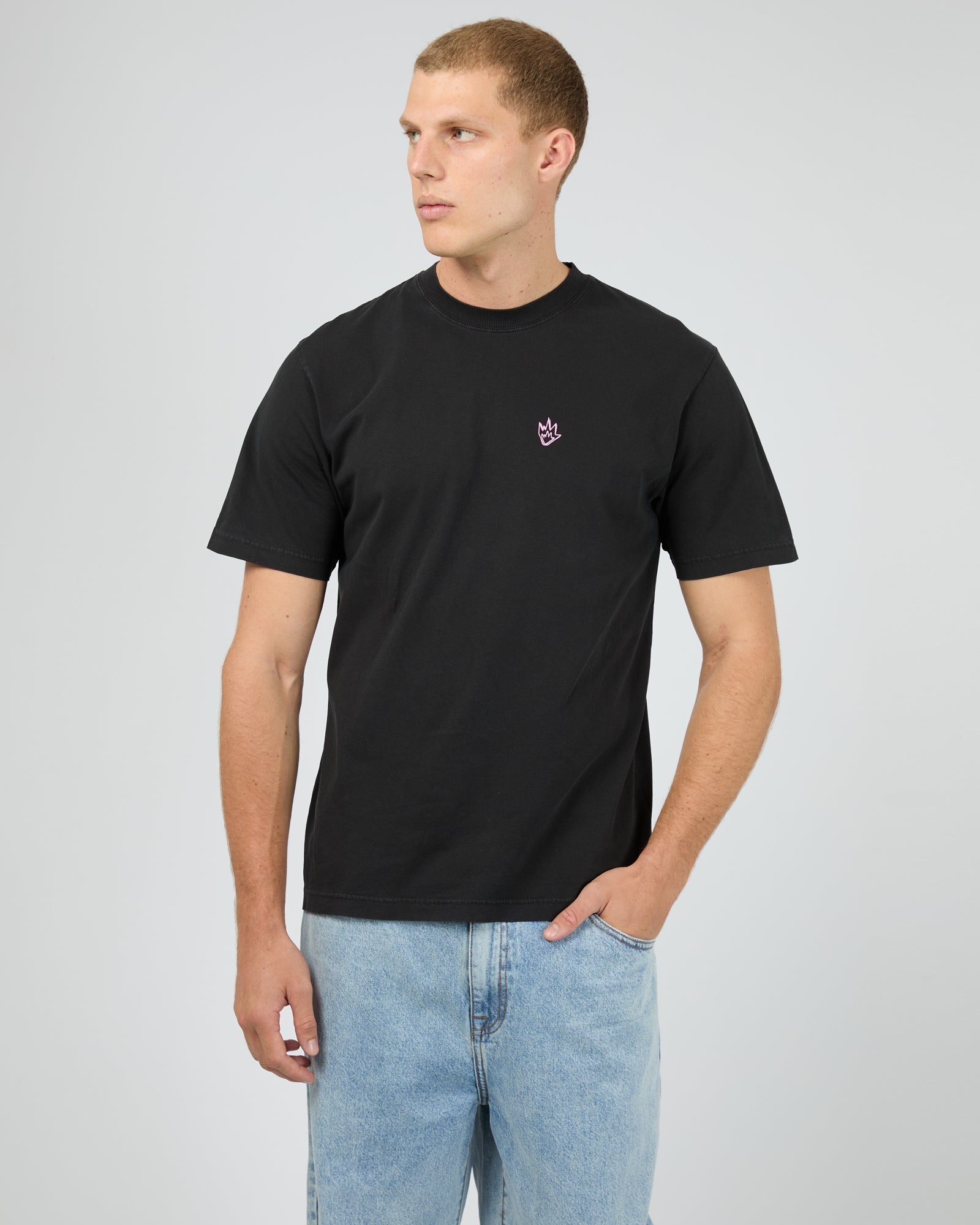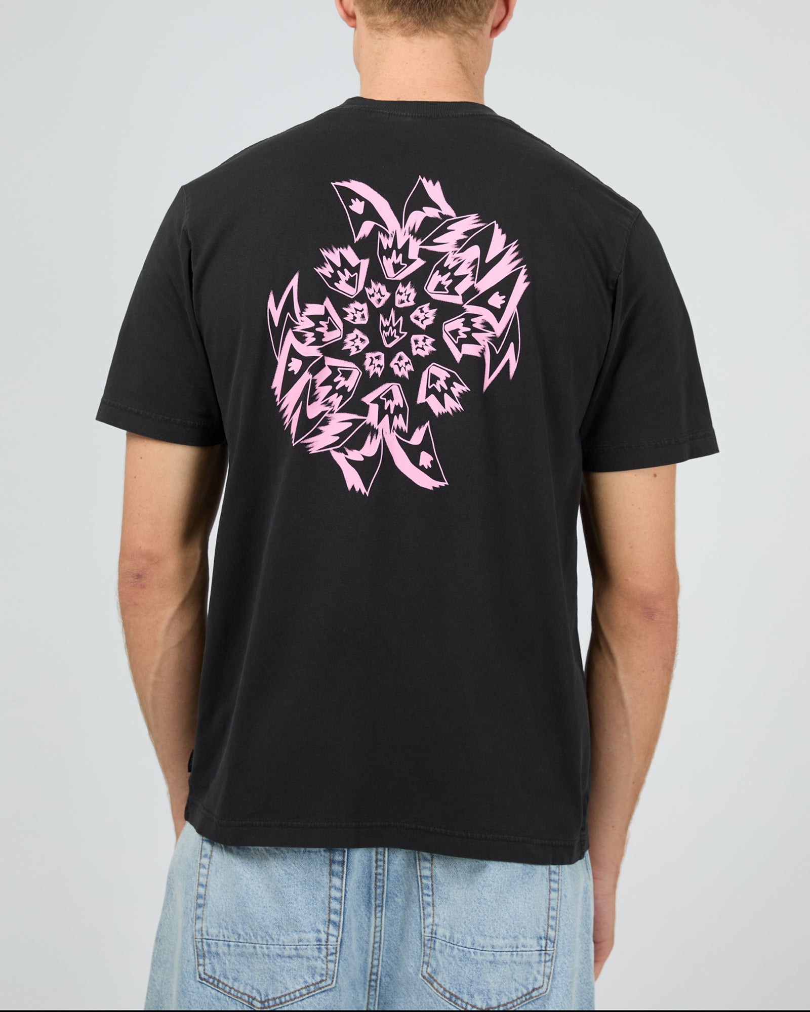 Introducing the 'Kaleidodope' tee, designed with a classic retro fit, printed chest artwork, and a comfortable ribbed neckline.