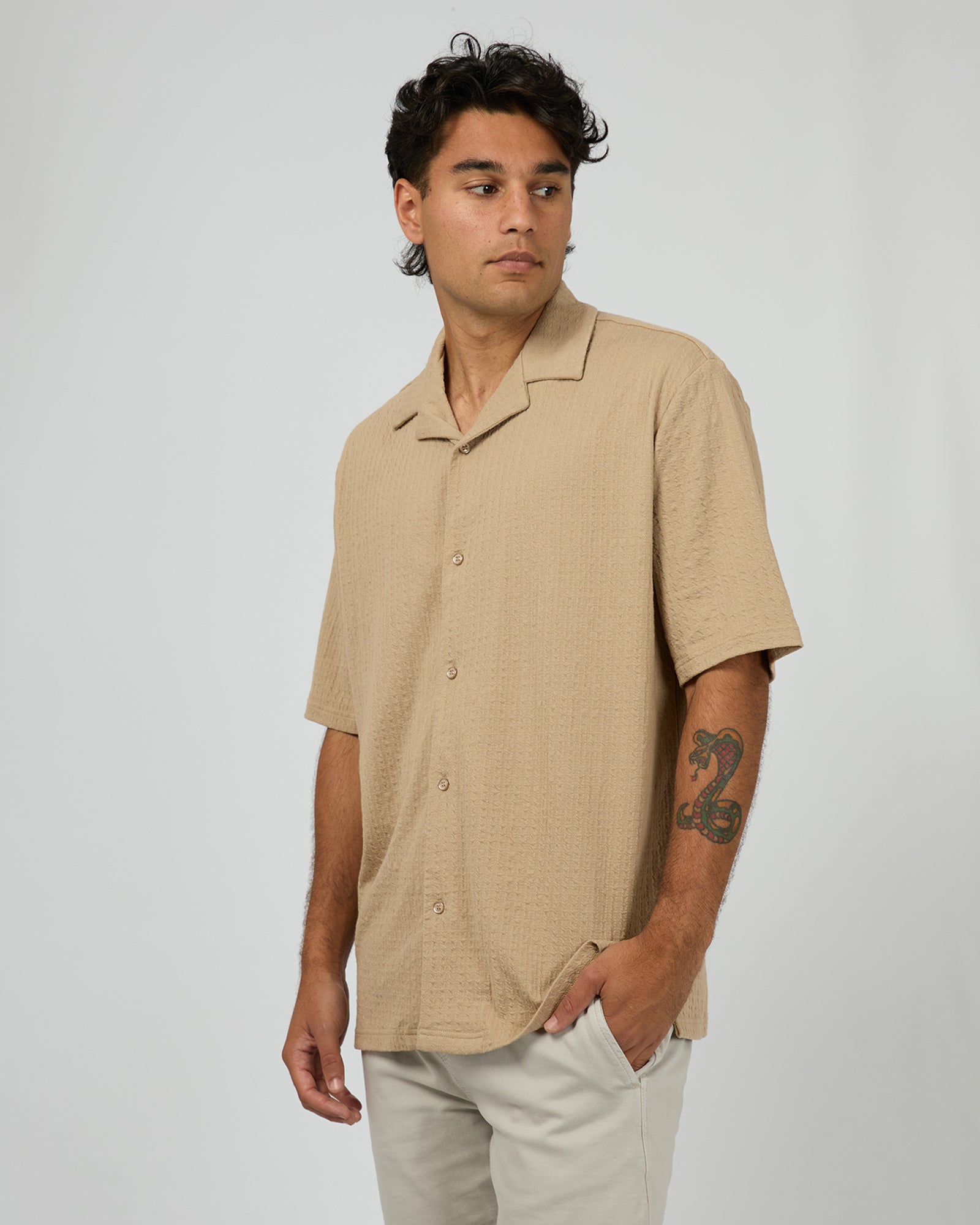 The Liberate Ss Shirt features a classic collared neckline and a convenient button-up front, designed for easy wear. Its short sleeves offer comfort and breathability, making it a versatile choice for everyday style.