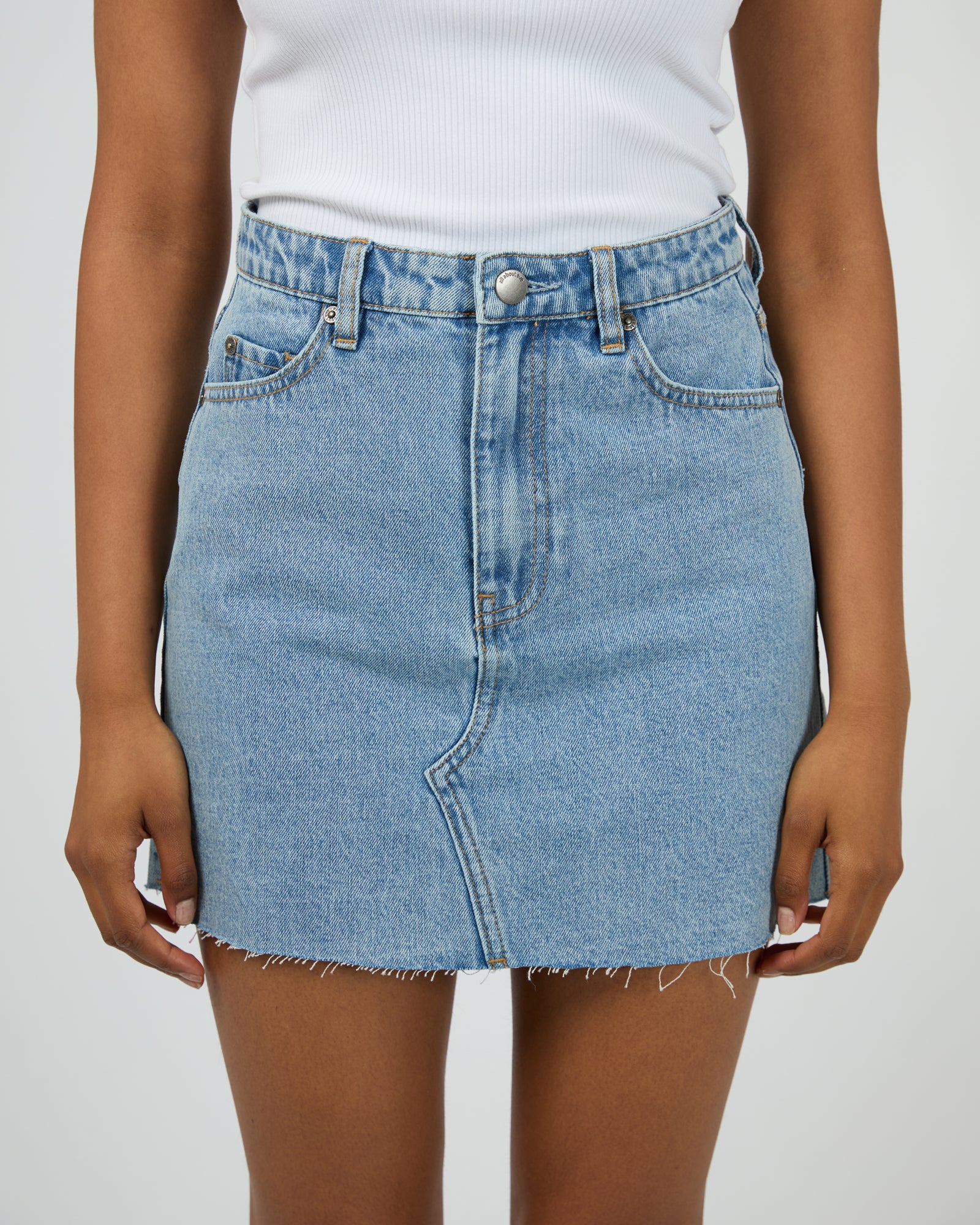 If you prefer skirts to pants, the Margot Denim Skirt is your go-to for laid-back days. This denim skirt features a mid-rise fit, button and zipper fly, and classic five-pocket styling. Falling to a comfortable mid-thigh length, it has the right amount of stretch for all-day comfort. Whether you pair it with a tank, t-shirt, button-down, or blouse, you'll always look chic and stylish!