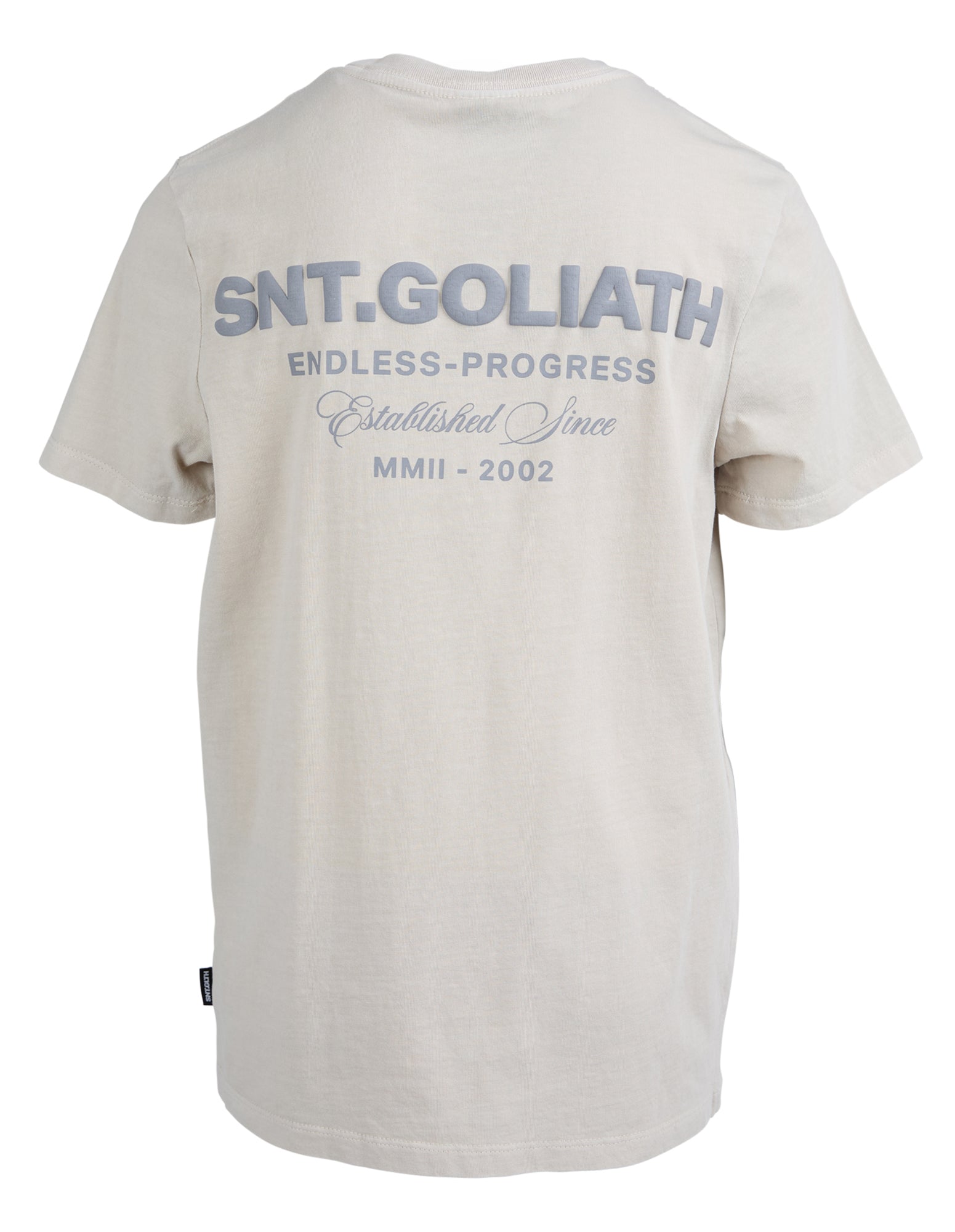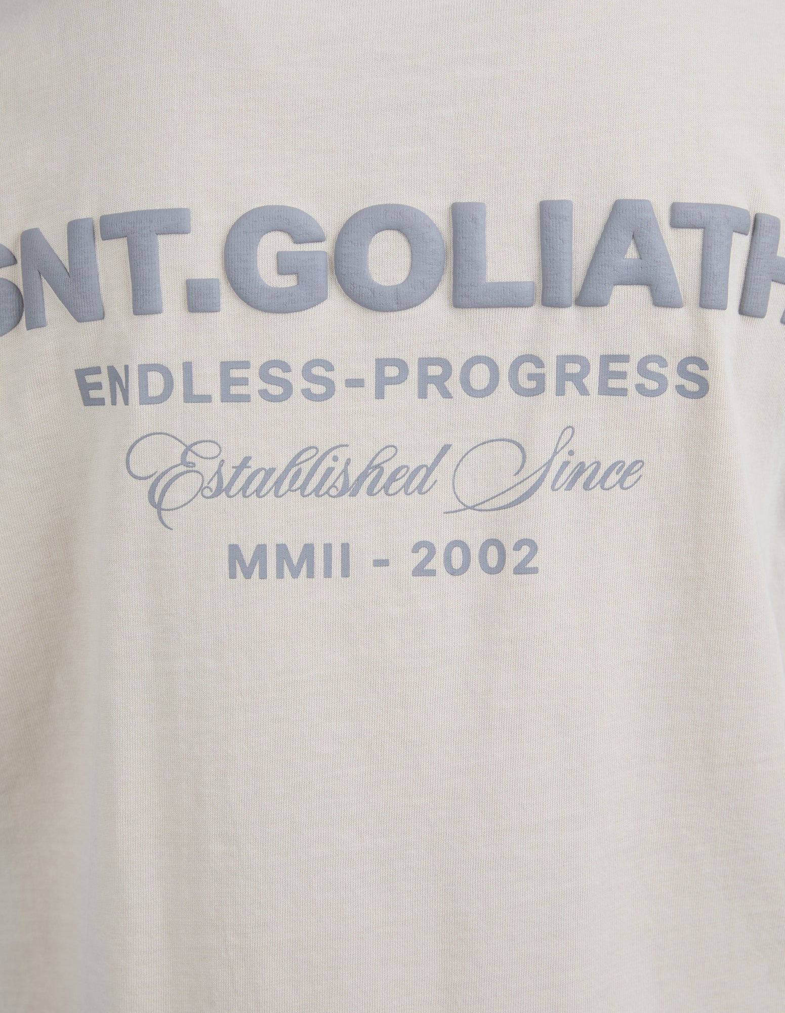 The Progress Tee is made from a 100% Cotton Jersey and offers our t-shirt standard fit. Displaying both front and back St. Goliath graphics, this tee uses a mix of standard and puff print. Finishing touches include St. Goliath branded trims throughout the garment, and a specialty wash to give an extra soft hand feel from first wear. The Progress tee is a perfect example of an easy-to-wear essential that can be tied into any outfit.