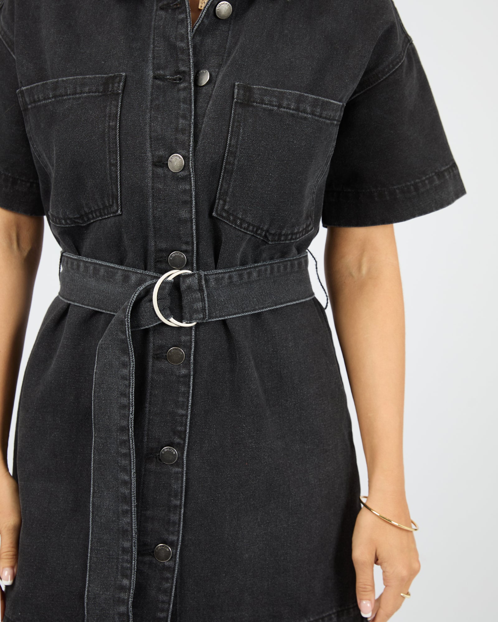The Sunny Denim Dress combines classic style with versatile functionality. Featuring a button-down front and a structured collared neckline, it offers a polished yet casual look. The adjustable belt allows you to tailor the fit for a flattering silhouette and comfort throughout the day. Ideal for transitioning from day to evening wear, this denim dress pairs effortlessly with a range of accessories to suit your style needs.
